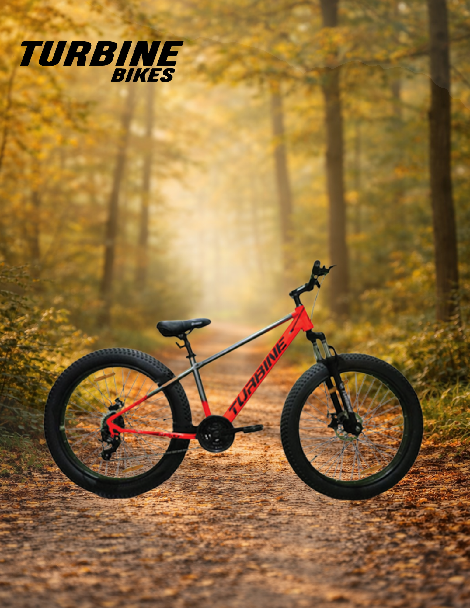 The Turbine Fat Bike is built for extreme stability and all-terrain riding, thanks to its extra-wide tyres and rugged frame. Designed to handle sand, gravel, rough roads, and trails with ease, it delivers superior grip, control, and a bold riding experience for adventure lovers.
